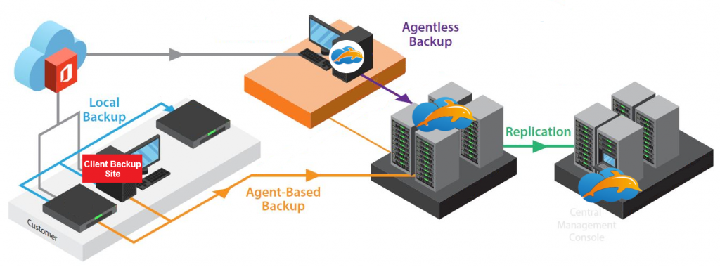 Either run backups directly from an Office 365 account to our cloud or use an agent to deliver a local copy to a secondary offline location.